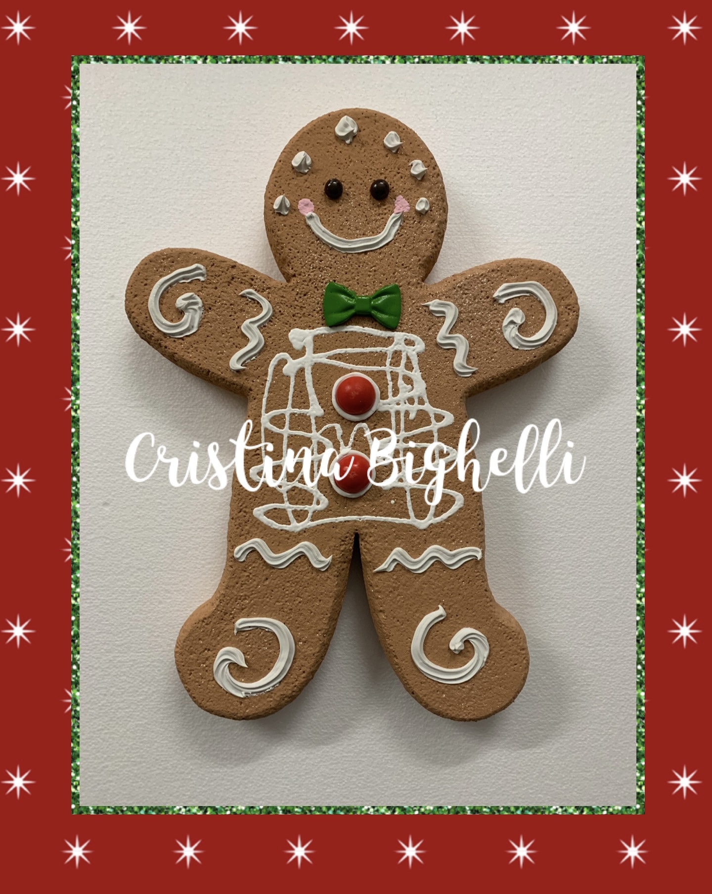 Decorazione in polistirolo a forma di omino biscotto realizzata e dipinta a mano.
