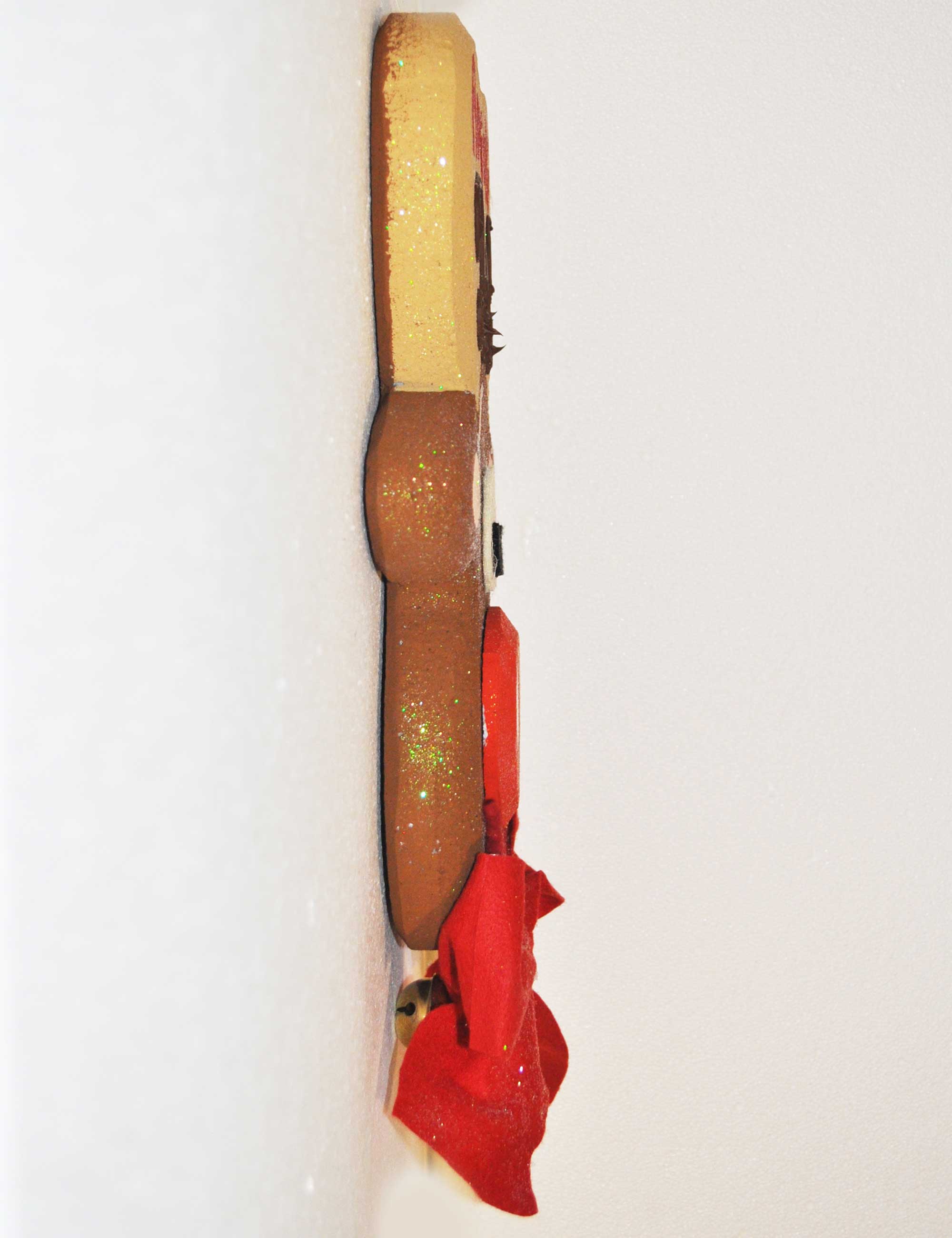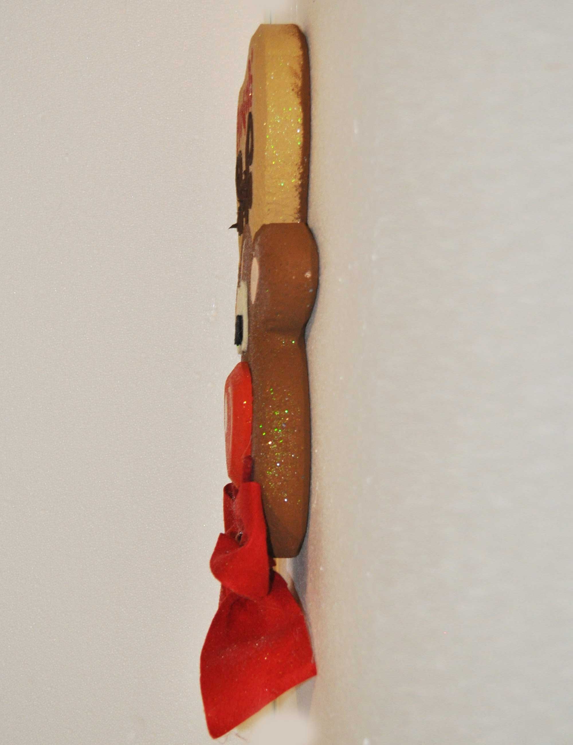 Decorazione in polistirolo a forma di testa di renna, realizzata e dipinta a mano.