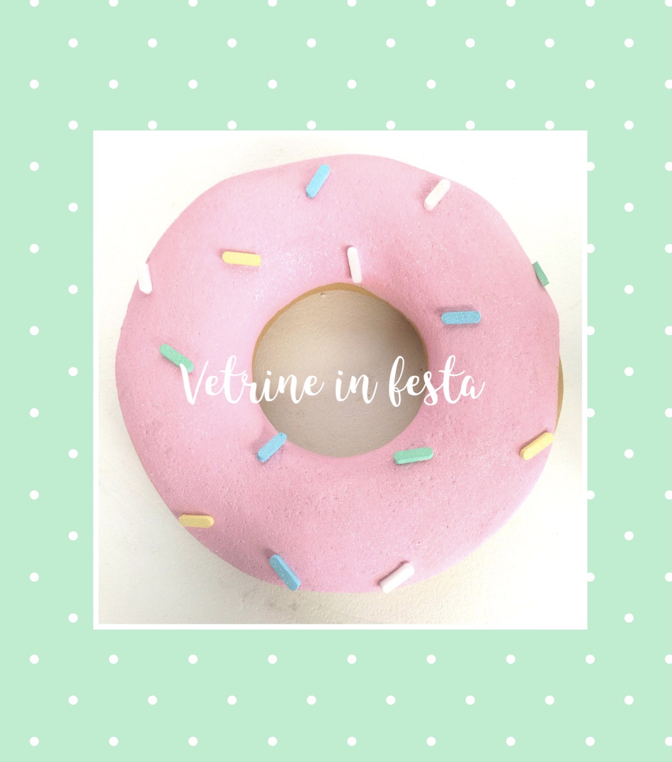 Decorazione in polistirolo a forma di ciambella , realizzata e dipinta a mano.