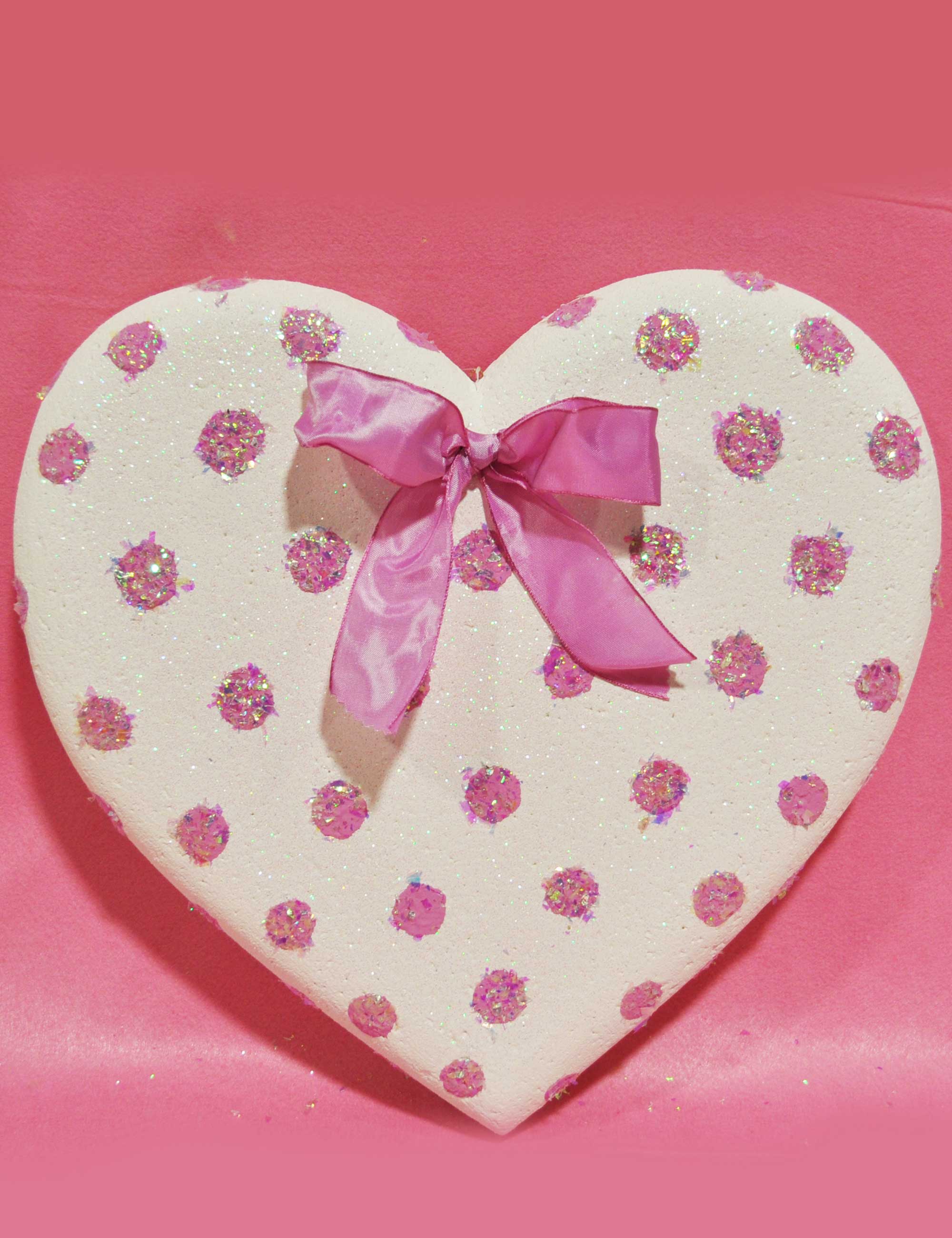 CUORE BIANCO A POIS ROSA 40CM.