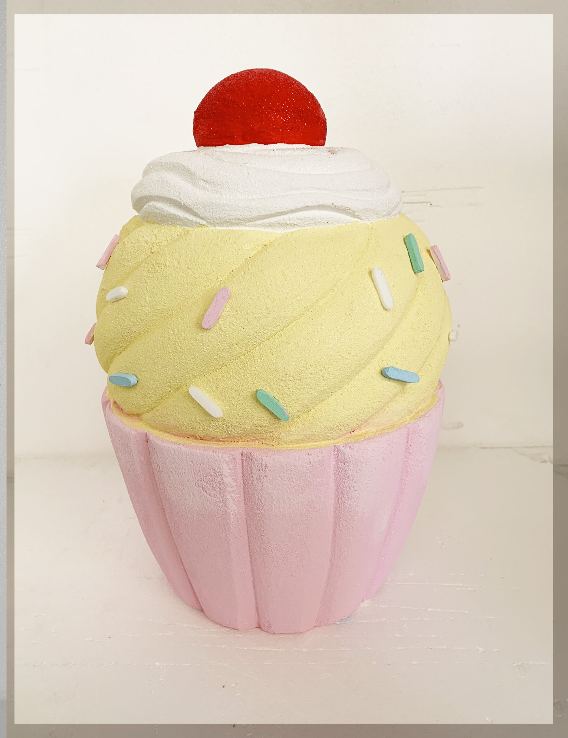 Decorazione in polistirolo a forma di cupcake, realizzata e dipinta a mano.Dimensioni h cm 45 x un diametro di cm 33